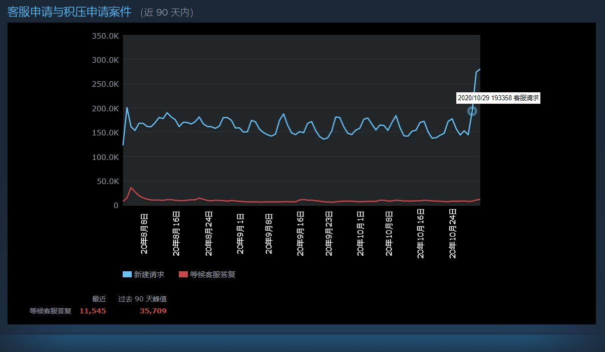 这已经是CDPR第三次宣布《赛博朋克2077》跳票。这次跳票,疑似引发了Steam平台大量预购玩家申请退款。