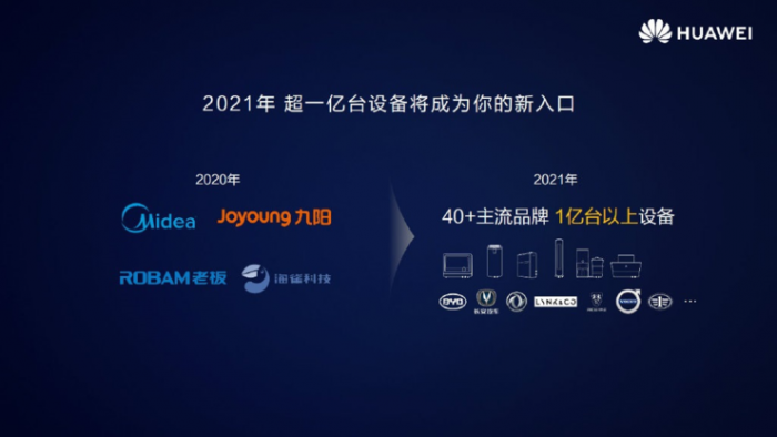 据悉,今年已有美的、九阳、老板电器、海雀科技等品牌设备搭载鸿蒙 OS,2021 年的目标是覆盖 40 + 主流品牌,实现超 1 亿台设备搭载。