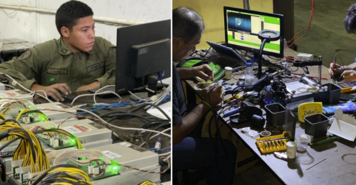 委内瑞拉国家电视台发布的一份视频显示,在委内瑞拉加拉加斯郊外的一个军事基地,身穿绿色军装的军官剪断了一条缀有一簇光亮气球的蓝色丝带。然后,这些人走进了一个狭窄、昏暗的地堡门。但这些气球并不是在为一个新的武器工厂或训练设施揭幕,而是标志着一个新的比特币矿场开张。