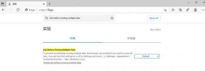 这样,在你已经打开多个标签页的情况下尝试关闭浏览器,可以跳出提示框执行确认操作。在测试了该功能后,如果你不想让 Edge 在关闭多个标签页时警告你,可以在点击全部关闭前选择 "不再询问",或前往设置 > 外观,禁用 " 关闭多个标签页前询问 " 设置。