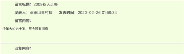 单看这样的信息,可能并不能触动你,但如果你打开网站的留言板,就会瞬间意识到,这一百页的信息,代表着几千个人间蒸发的生命,也牵动着无数家庭的喜怒哀乐。