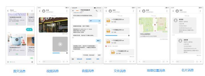 对个人用户而言,5G 消息将打破传统短信对每条信息 140 字节文本的形式,内容方面也将突破文字局限,实现文字、图片、音频、视频、位置、文件传输等多种富媒体信息的融合。