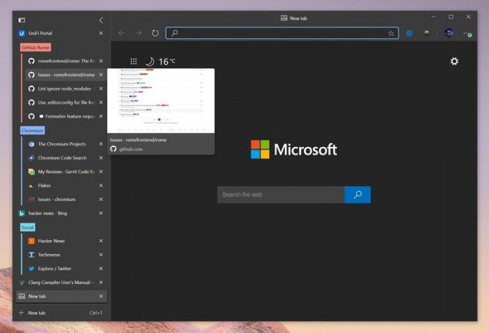 垂直标签页还可以提供更多的空间来快速多选、关闭和重新排序标签页,从而更容易组织多个标签页。当用户在使用垂直标签页时想要关注并查看更多的网页时,他们可以随时折叠窗格,并在他们想要与特定标签页进行交互时,只需悬停即可展开窗格。