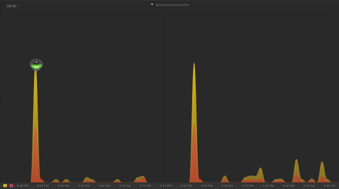 “这种行为不管是程序开启、最小化还是后台运行的时候都会强制执行。在Glasswire的图表中可以看到,我们关掉Epic游戏客户端又重新打开之后,数据传输瞬间飙到最大峰值。”