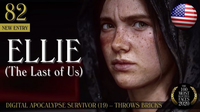自90年以来,美媒TC Candler和The Independent每年都公布“百大最美面孔(100 MOST BEAUTIFUL FACES)”排行榜。而在今年的榜单中,顽皮狗《最后的生还者2》女主艾莉成为唯一上榜的电子游戏角色,位居第82名。