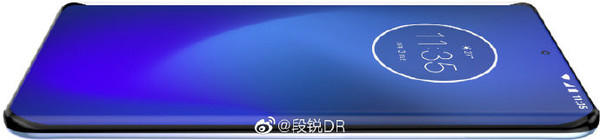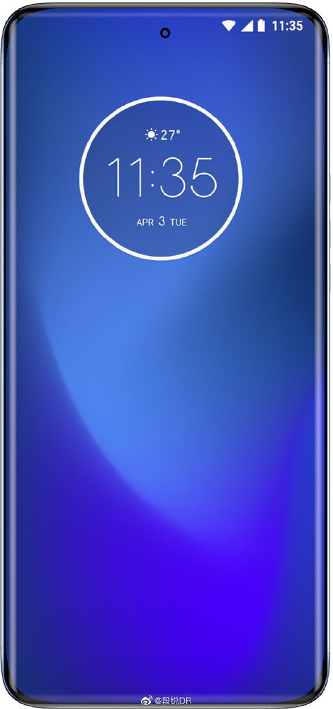 从渲染图来看,摩托罗拉这款新机和目前摩托罗拉的手机在外观设计上有着较大的区别,正面屏幕上采用了四边曲面屏的设计,所以单从正面屏幕来看,几乎做到了无边框的设计,但同时也保留了实体的电源按键和音量键,屏幕采用了中置挖孔屏,同时挖孔的直径看上去也非常的小,这就让它的颜值看起来非常的高。