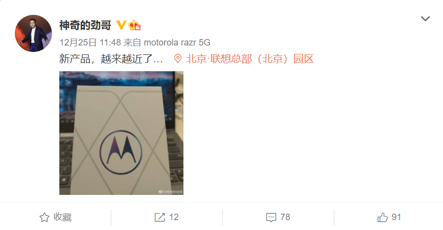 12月30日消息,摩托罗拉的一款新机渲染图在网上被曝光出来,联系近日联想中国区手机业务总经理陈劲在其微博晒出的摩托罗拉新机包装,有可能就是这款手机了。
