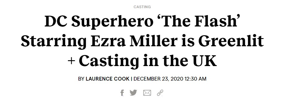 据外媒BACKSTAGE报道,《闪电侠》大电影将于明年4月在英国华纳兄弟利维斯顿制片厂开拍,埃兹拉·米勒(Ezra Miller)将回归出演闪电侠,Rich Delia和Kate Ringsell担任选角导演。