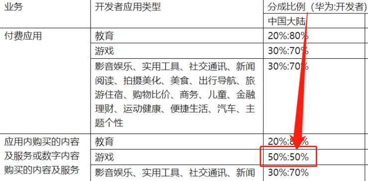 也就是说,如果你玩的王者荣耀是通过华为应用商店下载的,你在里面充的钱,基本上华为都得拿走一半。