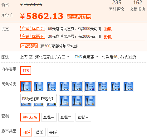 近日,某宝上的PS5(现货)价格下滑,大部分日版PS5的价格已经跌破6000元,其中,日版光驱PS5价格约为5800元左右;而日版数字PS5价格则跌至不足5000元,光驱版与数字版价格相差约为1000元。