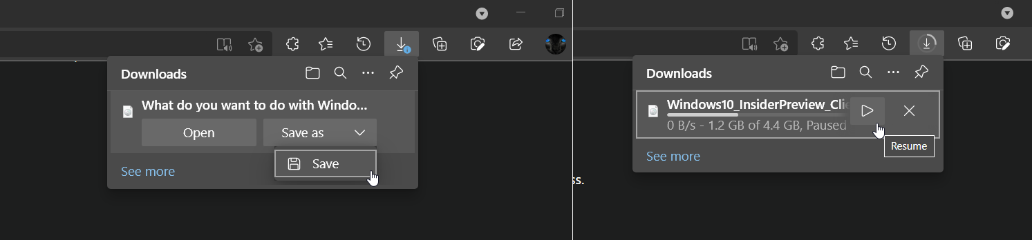 正如你在上面的图片中所看到的,管理下载现在变得更加容易。用户将能够从菜单中一键暂停、恢复下载。此外,还可以更容易地从下载文件列表中删除任何项目。遗憾的是,新的浮层菜单还没有对公众开放,可能还需要一段时间的稳定过程。