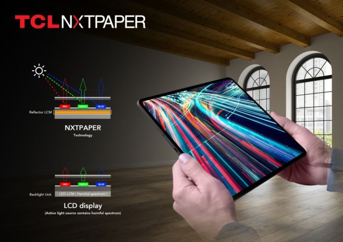 NXTPAPER 技术在 2020 年的 IFA 大展首次亮相,虽然不是 Kindle 等阅读器上熟悉的屏幕技术,但设计理念有一些是共通的。它不像 LCD 屏幕那样依靠人工背光源,而是通过屏幕将自然光反射出去。