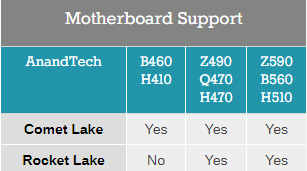 芯片组方面,Intel公布了Z590、B560和H510,DMI总线速度翻番到PCIe 3.0 x8。兼容性方面,500系主板完美兼容10代、11代酷睿,但例外是,由于B460、H410芯片组是22nm工艺,所以无法正确点亮11代酷睿。