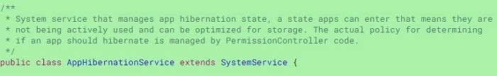 XDA-Developers 指出,在提交至 AOSP 的几行代码更改中,已经暗示了 Android 12 将允许未使用的 App 休眠,以进一步节省系统资源。