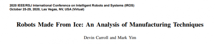 在去年 10 月召开的机器人与智能系统领域国际旗舰会议 2020 年 IEEE/RSJ 智能机器人与系统国际会议(IROS 2020)上,与上述研究相关的论文被收录,这一论文题为 Robots Made From Ice: An Analysis of Manufacturing Techniques(冰制机器人:制造技术分析)。