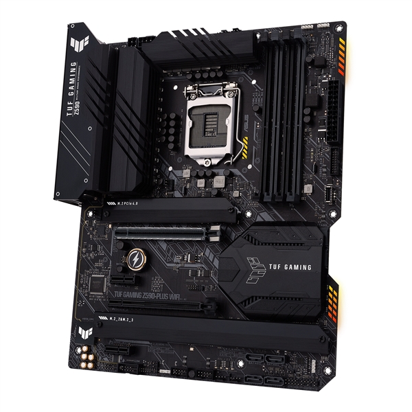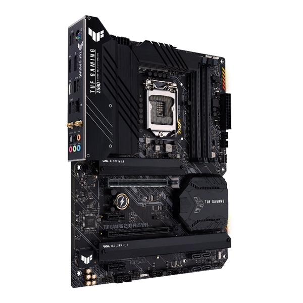 TUF GAMING电竞特工系列带来TUF GAMING Z590-PLUS WIFI,专为年轻电竞玩家设计,采用了全新的电竞特工LOGO,利落的线条和裂甲设计。