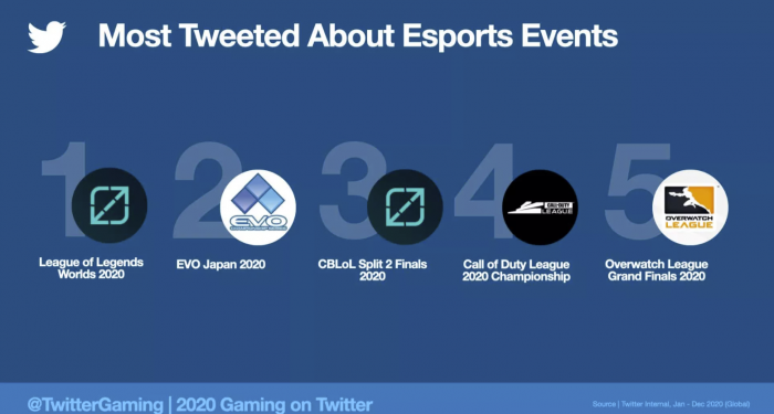 电竞推文数量也有所增加。2020年与该主题相关的帖子增加了14%,而《英雄联盟》2020年世界赛是最受关注的赛事,FaZe Clan是最受推特用户关注的队伍,Mongraal是最受推特用户关注的电竞选手。