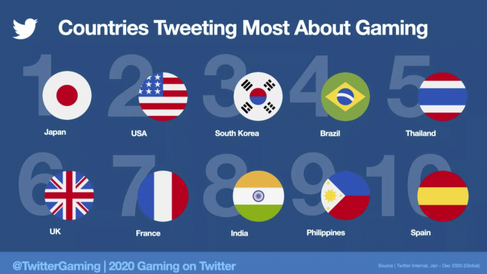 新冠疫情对游戏的影响不仅仅意味着去年游戏销量增加,而且更多的人在推特上谈论游戏。最新统计数据显示,推特用户2020年发布了超过20亿条与游戏相关的推文,比上一年增长了75%。