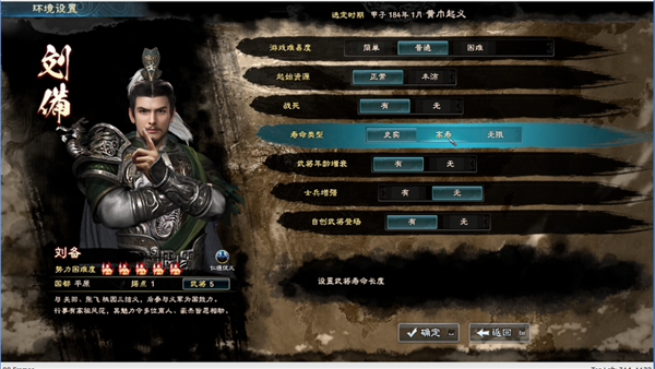 这里和前作也有一个区别,那就是我们可以选择有无战死、以及寿命类型和武将能力是否随着年龄衰减这些选项。