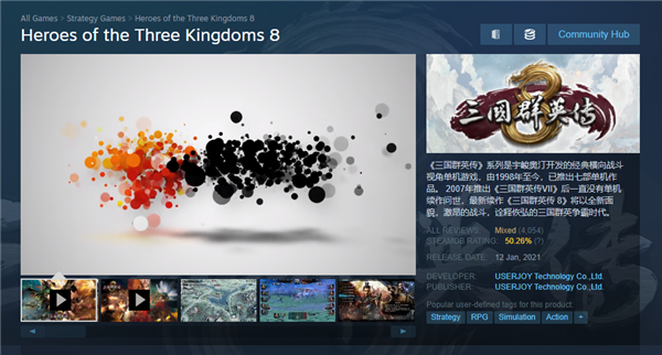 可是光荣最近都把这俩系列的名声给做臭了,拜托宇峻奥汀吸取一下经验教训,别把自己给做崩了才是正经事。《三国群英传8》现在在 Steam 上的好评率大概只有 50% ,褒贬不一。