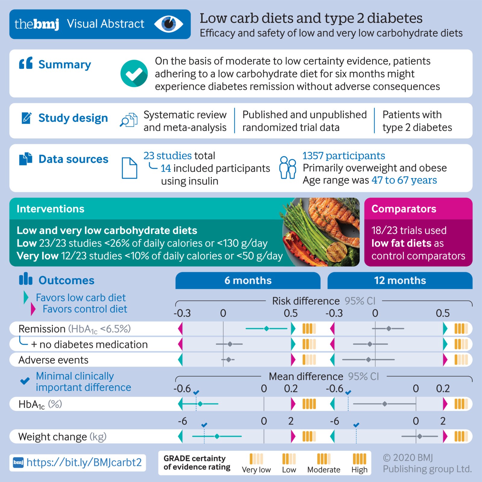 “我们使用最稳健的科学方法来检查来自世界各地的23项已发表的临床试验的综合效果,涉及1357名参与者,包括其中5项临床试验中关于血糖状态标志物的额外数据,”该研究的共同领导者Joshua Goldenberg解释说。“通过检查低碳水化合物饮食对临床目标影响的全部证据,这项研究将帮助临床医生和患者更好地了解如何使用这种饮食方法来治疗2型糖尿病,尽管有许多药物开发,但2型糖尿病仍然是世界范围内的一个重要和不断恶化的问题。”
