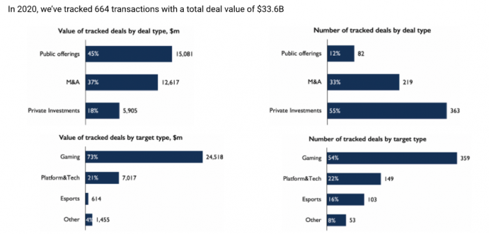 报告称,游戏行业的风险投资和企业投资也在增加,在363笔交易中,交易总价值达59亿美元,重点关注多平台游戏开发商和发行商。