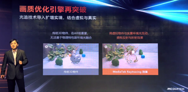 画质方面,通过HyperEngine 3.0加上AI,通过HDR让游戏画面更加明亮,易于玩家操作。特别值得一提的是,MediaTek的HyperEngine布局了光线追踪(Ray Tracing)技术,光线追踪技术能够为游玩家带来媲美真实的游戏画面。
