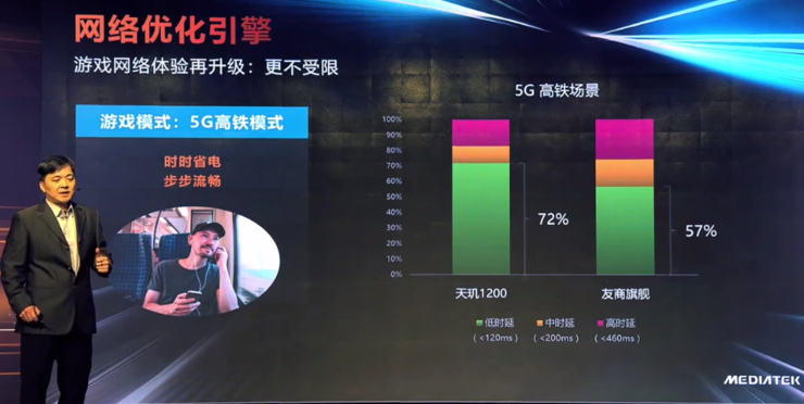 网络优化方面,天玑1200利用双卡5G的特性,在5G网络连接下可实现游戏通话双卡并行,在主卡玩手游的同时接听副卡来电,游戏持续不断线。而超级热点和高铁游戏模式则针对不同的游戏环境进行网络优化,为的是有效降低游戏网络延迟和卡顿。