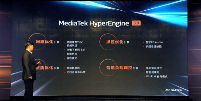除了5G和AI,游戏性能也成为了最近几年智能手机处理器升级的重点。天玑1200搭载的是升级的MediaTek HyperEngine 3.0游戏优化引擎,拥有网络优化引擎、操控优化引擎、智能负载调控引擎、画质优化引擎四大引擎。