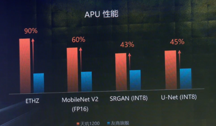 APU依旧是3.0版本,MediaTek无线通信事业部副总经理李彦辑表示,与友商旗舰相比,天玑1200的ETHZ提升90%,MobileNet V2(FP16)提升60%,SRGAN(INTB)提升43%,U-Net(INTB)提升45%。
