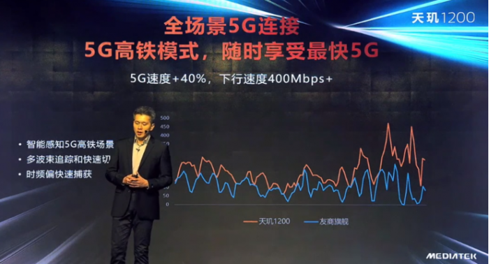 通过进一步优化,天玑1200推出5G高铁模式、5G电梯模式等应用模式。通过智能场景感知、信号的快速捕获跟踪、智能搜网和驻网,让手机拥有高效且稳定的5G性能。不过,天玑1200依旧不支持5G毫米波。