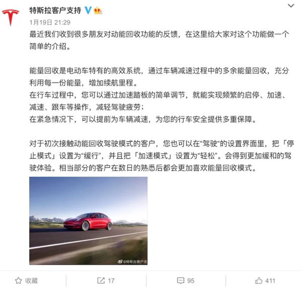 更值得关注的还是,之前不少车主频频质疑的车辆“失控”问题,可能就是特斯拉动能回收功能所导致的。