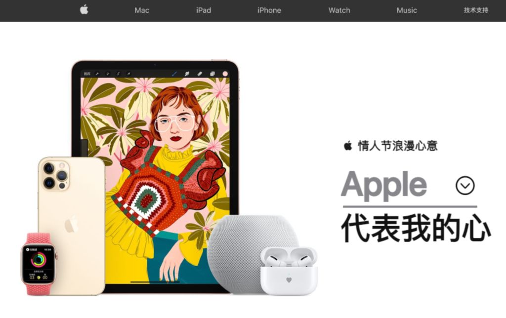 苹果中国官网近日上线了情人节礼品指南页面,如果你不知道送什么给心爱的人,那么苹果为你精心挑选了一些数码产品。和苹果大多数礼品指南一样,情人节礼品指南包括苹果最新的产品,包括 iPhone 12 系列、iPhone SE、AirPods Pro、AirPods、Apple Watch Series 6、Apple Watch SE、iPad 和 Apple TV 4K。