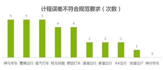 具体来看,计时误差不符合规范要求次数最多的四家平台为:神州专车(11次)、斑马快跑(7次)、首汽约车(6次)和曹操出行(6次)。