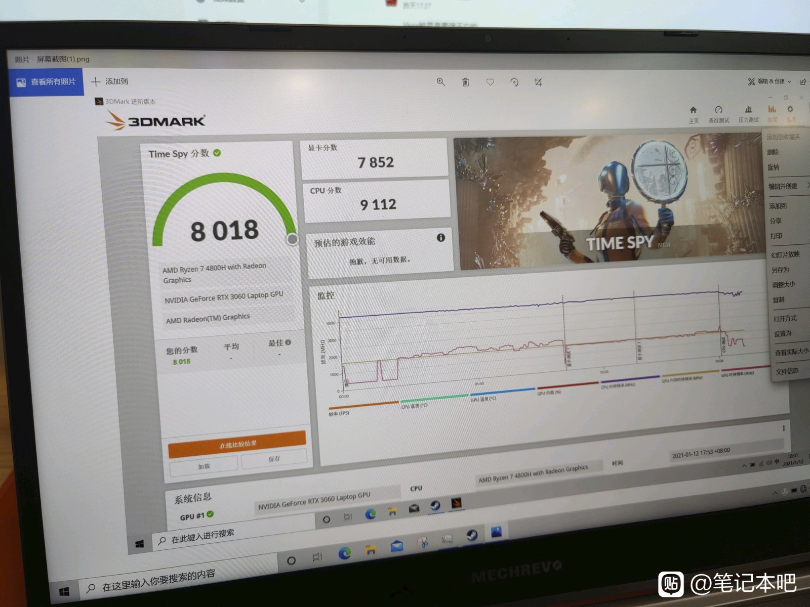 推特用户@harukaze5719提供了两份RTX 3060笔记本GPU成绩,在Time Spy中的得分分别为7852分和8843分。分数差异原因并没有得到澄清,不过这可能是由于两个不同的设备使用了Max-P(正常版本)或Max-Q(功率限制版本)的原因。