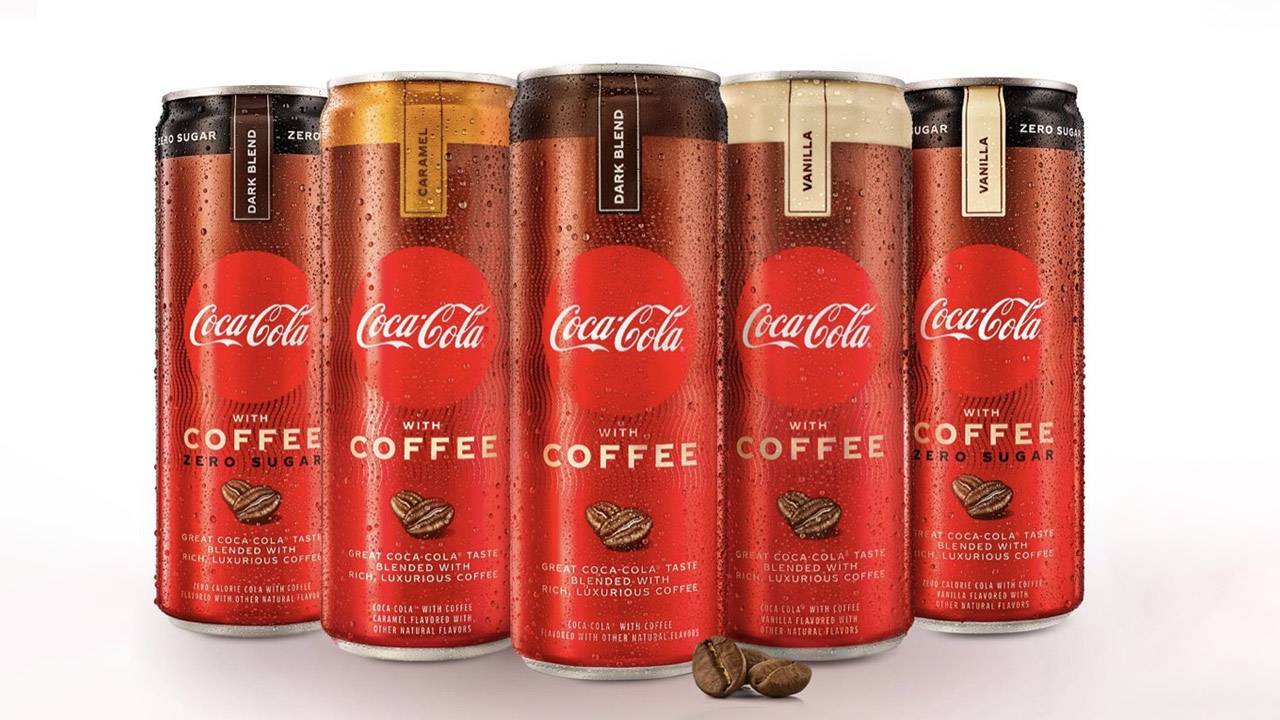你会注意到包装红圈中白色的可口可乐标志。在品牌的下方,你会看到用显眼的灰白色字体写着的 "with COFFEE "字样。下面则是咖啡豆的照片。在每个罐子的顶部,你会看到一个味道和颜色。据悉,这种饮料混合了用巴西咖啡豆制成的咖啡、“可口可乐那种熟悉的、正宗的味道”以及三种不同口味中的一种:香草、焦糖和黑咖啡。