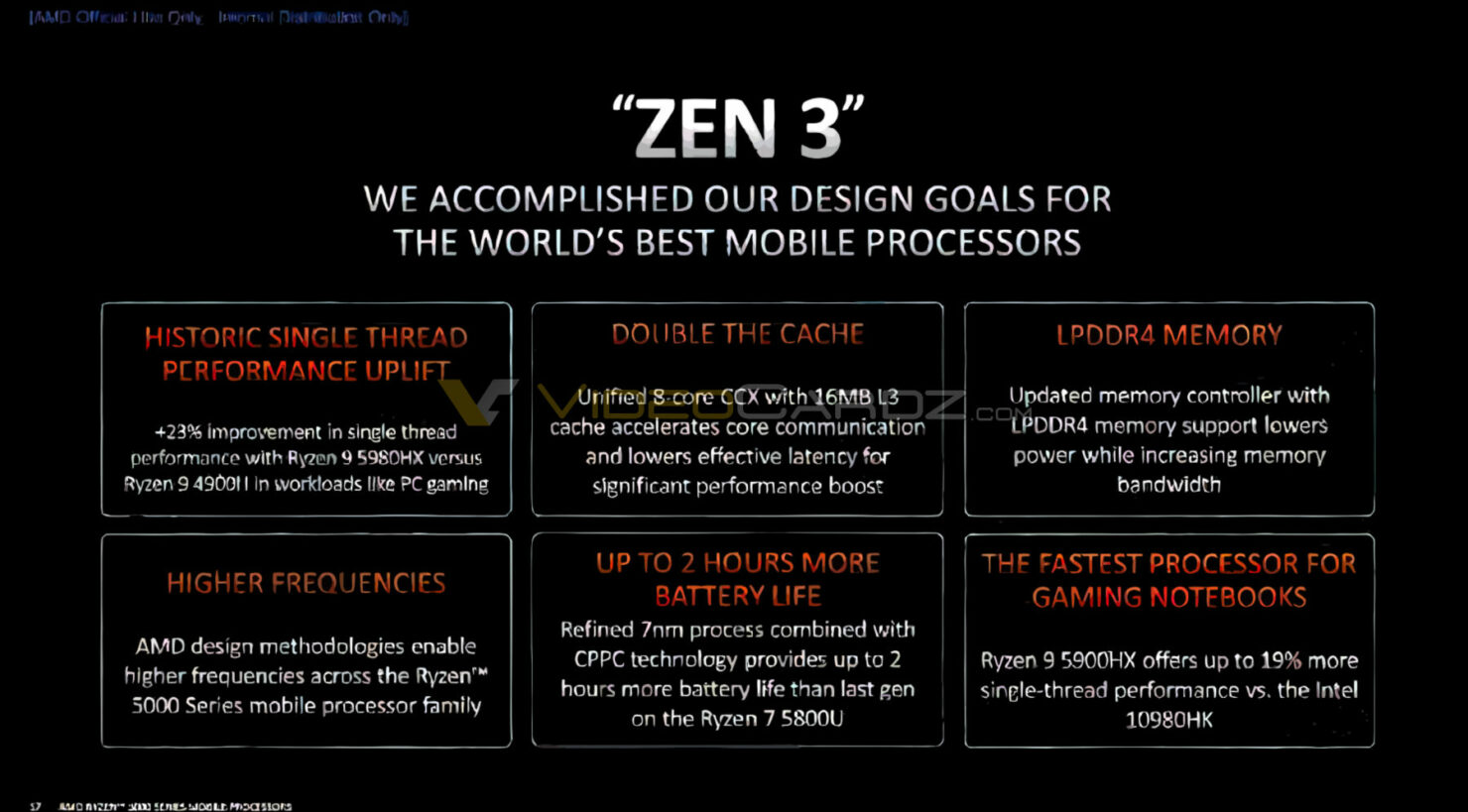 VideoCardz 刚刚分享了有关 AMD 锐龙 5000 系列移动处理器的大量细节,作为备受好评的 Renoir 系列 APU 产品线的继任者,最新的 Zen 3 Cezanne 架构依然很是值得我们期待。此外由泄露的 PPT 内容可知,Cezanne 系列 APU 的核心面积也较上一代增加了 15%、达到了 180 m㎡ 。