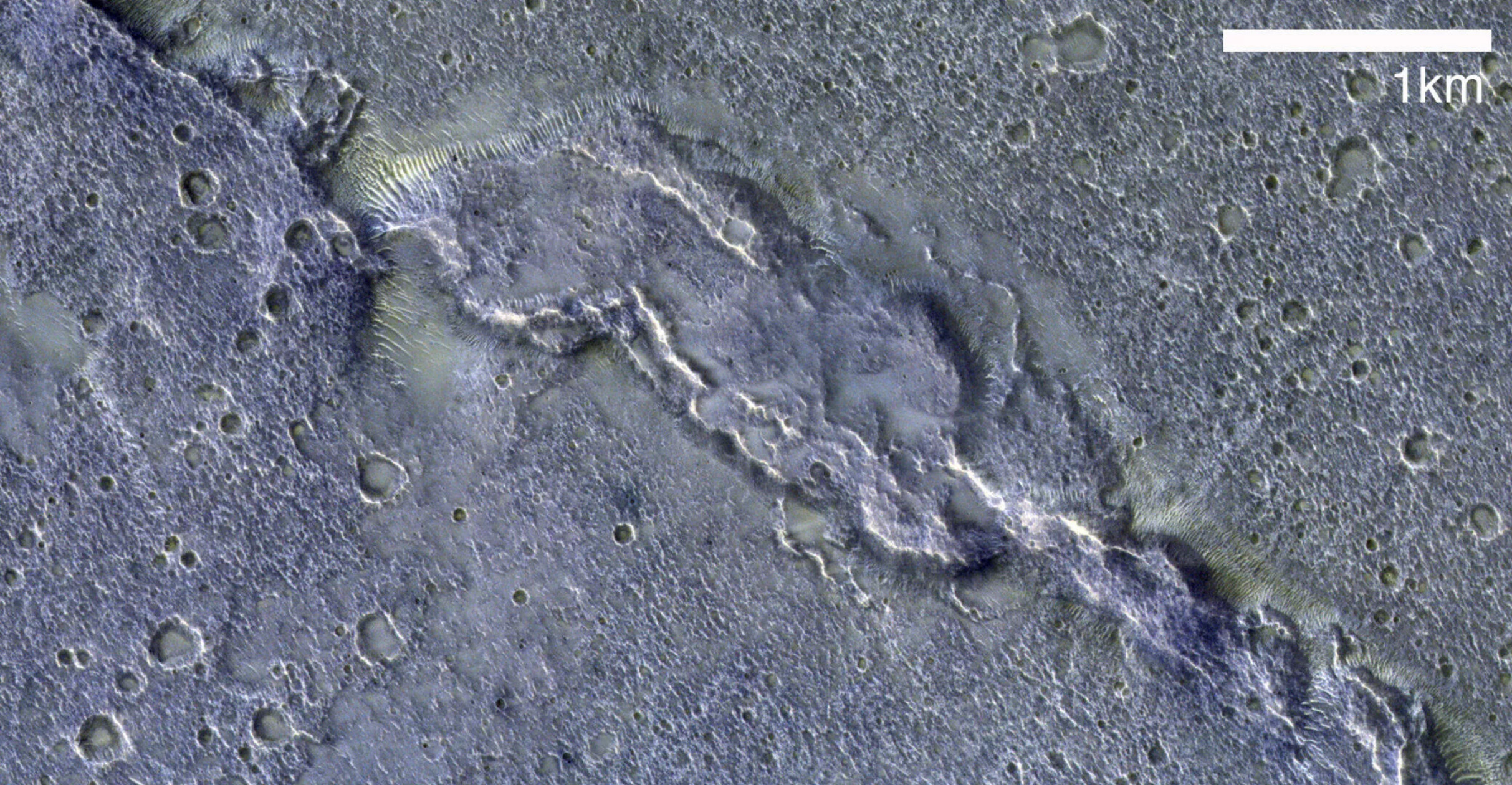 ESA在一份声明中说道:“褶皱山脊是由这颗行星地壳和上地幔的载荷和弯曲而在层状玄武岩熔岩中形成的构造特征。这些构造应力是由该科行星内部冷却和随即的收缩造成。”