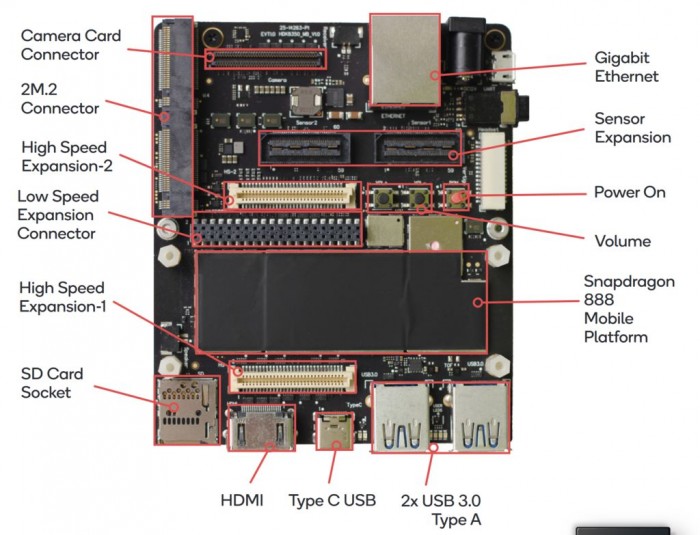 骁龙 888 是高通最新推出的高端移动八核 SoC,包括一个 Cortex-X1 核心、三个 Cortex-A78 核心和四个低功耗的 Cortex-A55 核心,配备 Adreno 660 GPU 和骁龙 X60 5G 调制解调器。虽然这款处理器主要用于小米 11 等旗舰手机中,不过高通和创力(Lantronix)合作,推出了专门为 Android 开发者、硬件厂商和原始设备制造商(OEM)设计的骁龙 888 移动硬件开发套件。