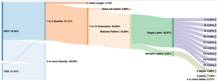 根据 Verisign 在去年 8-9 月期间的量化统计,利用 Chromium 内网重定向检测测试结果显示 45.8% 的总 DNS 流量是访问根服务器的。此后,Chromium 团队重新设计了代码,在 Android 设备上禁用了重定向测试,并推出了多状态DNS拦截策略,支持禁用桌面浏览器的重定向测试。该功能在 2020 年 11 月中旬适用于 Android 系统 Chromium 87 中发布,此后很快,根服务器的 DNS 查询量迅速下降。