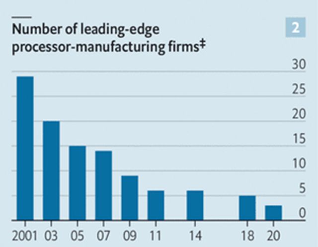 图2锐减的芯片制造企业数量