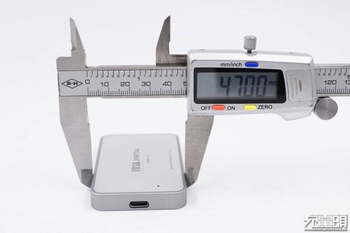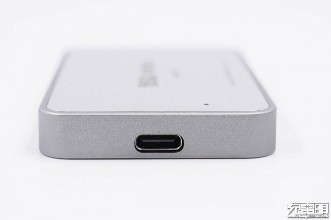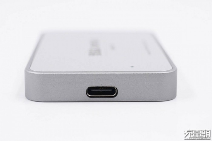致钛这款移动固态硬盘机身小巧扁平,机身壳采用锌合金材质,正背面贴有铝板,并且拉丝处理。