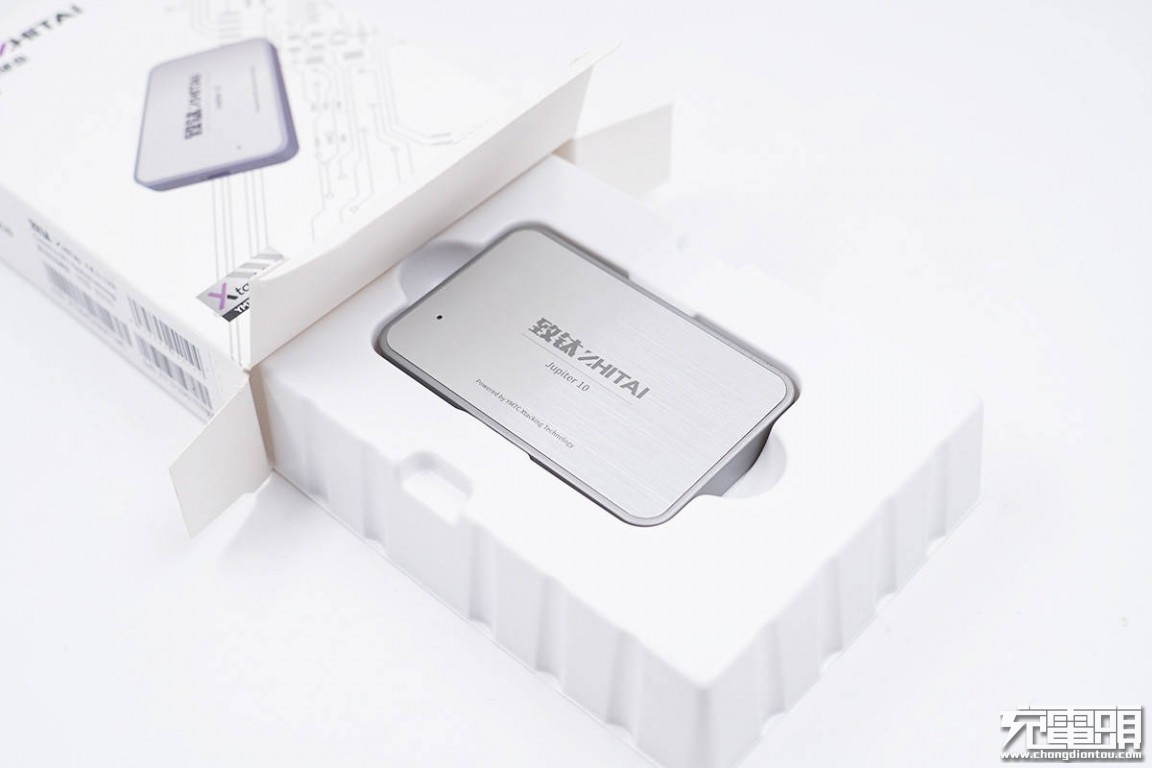 ZHITAI致钛木星10固态硬盘主体外壳采用锌合金材质,正背面贴有装饰铝板,整体小巧精致又坚固耐用。硬盘兼具便携和高速传输优点,是组装式固态硬盘和一般移动硬盘所不具备的,鱼和熊掌兼得。