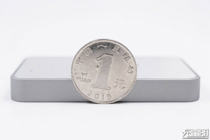 和一元硬币直观对比,厚度比一元硬币直径一半还小。