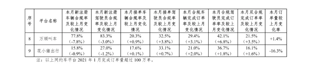 (原标题:网约车监管信息交互平台发布2021年1月份网约车行业数据)