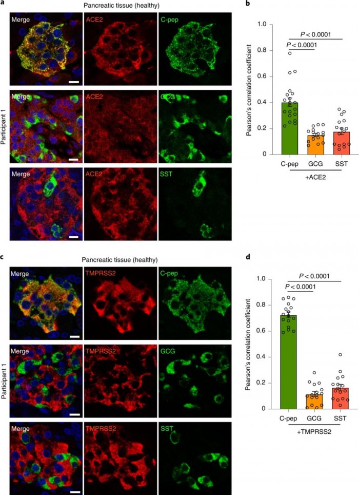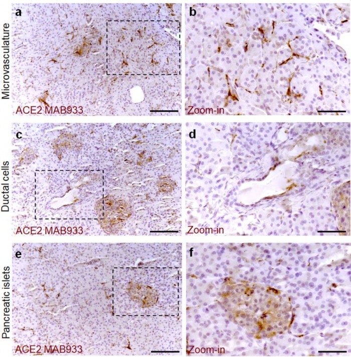 该病毒究竟如何导致新的糖尿病病例还不清楚,但专家们有几种理论。一种是SARS-CoV-2可能通过与ACE2受体结合,破坏或改变胰腺中产生胰岛素的β细胞(该理论来自发表在《新英格兰医学杂志》上的一封短讯)。这些受体存在于胰腺、肠道和肾脏中。而越来越多的证据表明,病毒利用它们来感染人体,可能会改变细胞中有ACE2受体参与的功能过程。