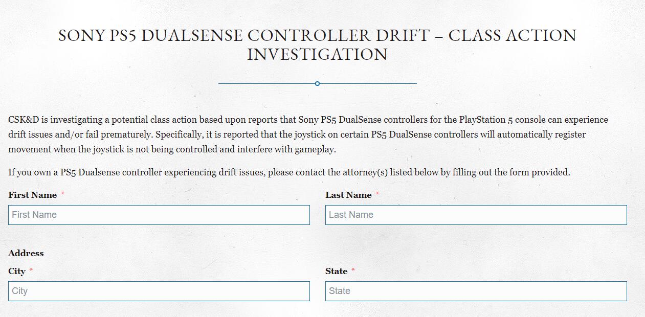 据IGN的消息,总部位于美国的律师事务所Chimicles Schwartz Kriner&Donaldson-SmithLLP(CSK&D)已经在其网站上发起了一项针对PS5手柄漂移问题的问卷调查,允许PS5拥有者反馈漂移实例。该页面显示:“CSK&D正在调查一项潜在的集体诉讼,据报道,索尼PS5主机的Dualsense手柄可能会出现漂移/过早损坏问题。”