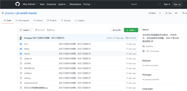 在 Github 上,有人上传了用于在电商抢茅台的脚本。通过配置这样的脚本,可以让电脑自动完成抢购茅台的流程,理论上当然可以先人一步。