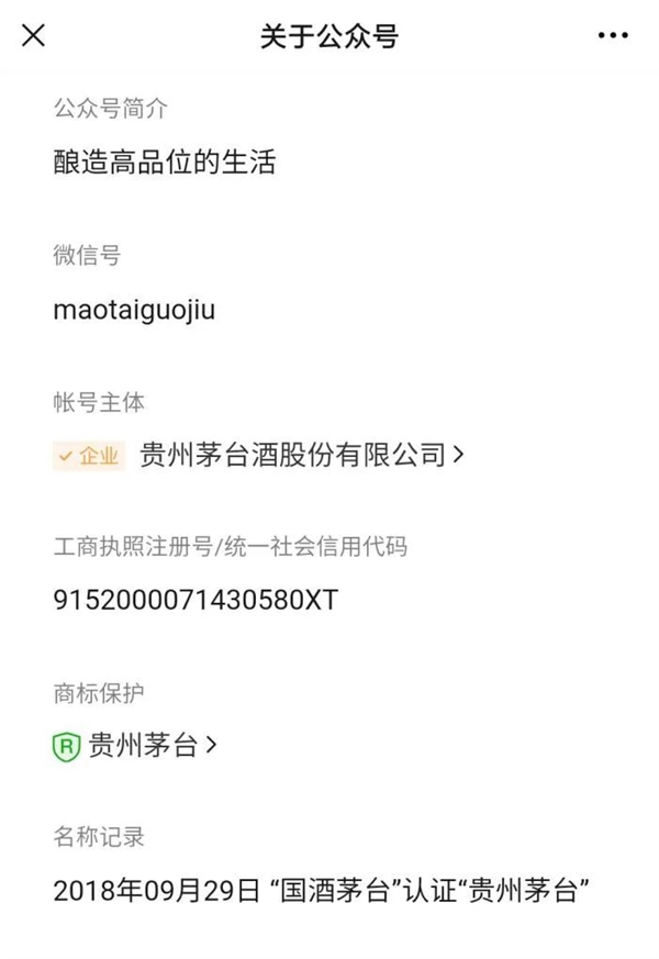 茅台的公众号也在那一年从 “ 国酒茅台 ” 变为了 “ 贵州茅台 ”▼