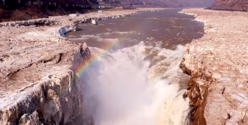 2月15日消息,近日,随着气温回升,黄河壶口瀑布冰河解封,气势如虹的黄河水把十里龙槽的冰凌冲出了一条通道。在春日阳光的照射下,出现美丽的彩虹,场面蔚为壮观。壶口瀑布位于延安,是国家4A级旅游景区,是中国第二大瀑布,世界上最大的黄色瀑。黄河奔流至此,两岸石壁峭立,河口收束狭如壶口,故名壶口瀑布。